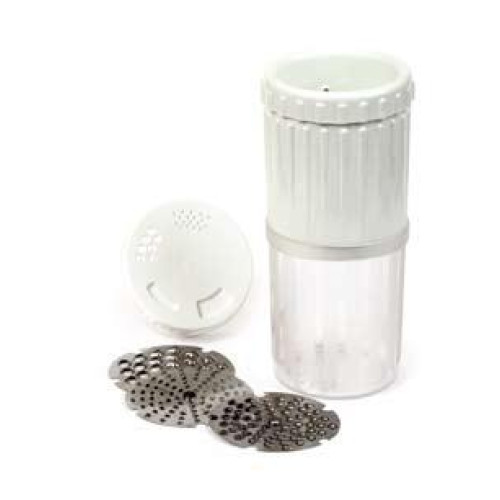 Фирма Белый кот предлагает Вашему вниманию удобный, маленький инструмент Терку Мультигретер. Изделие приобретенное на сайте Белый кот поможет быстро измельчить сухарики, печенье, сыр, орехи, яйца, кусочки варёных овощей, шоколад, фрукты. Терка Мультигретер имеет три сменных стальных ножа: нож с крупной насечкой, нож со средней насечкой и нож с мелкой насечкой. Ножи сделаны из высококачественной нержавеющей стали. Прослужат долгие годы.